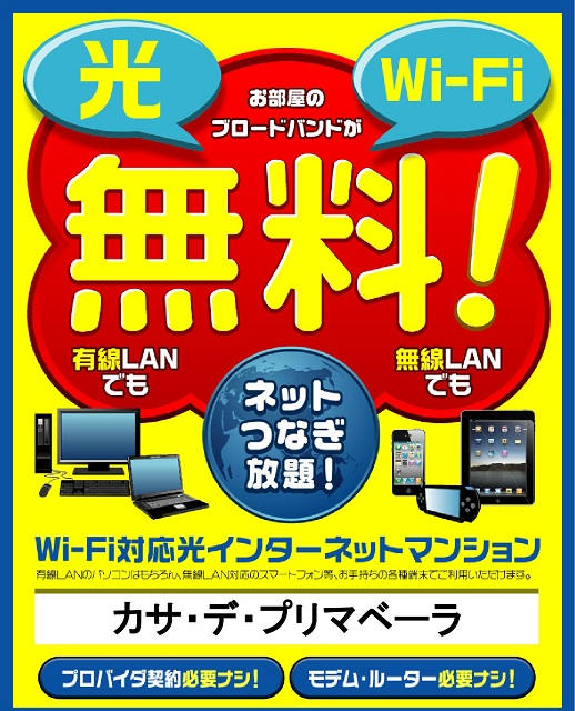 ☆なんと!Wi-Fi対応光インターネットマンション!しかも無料!☆ネットつなぎ放題♪☆